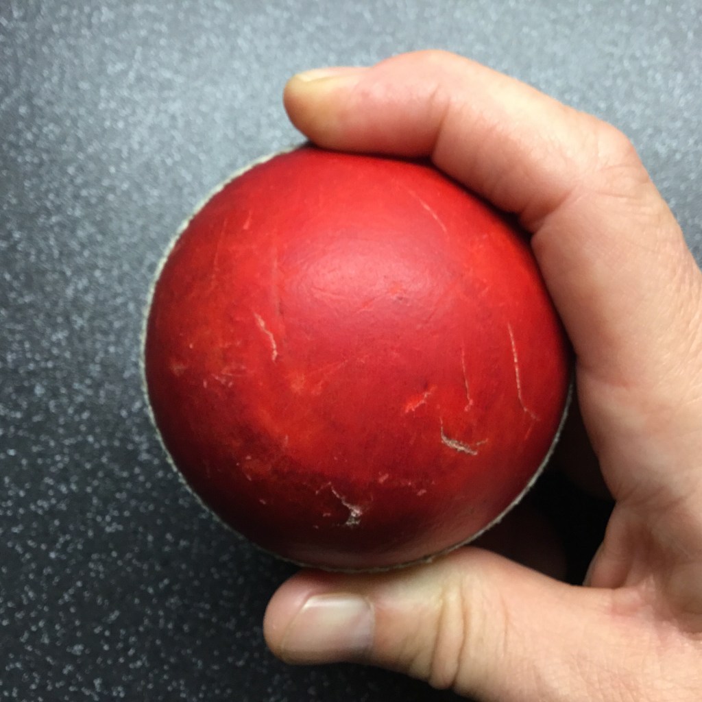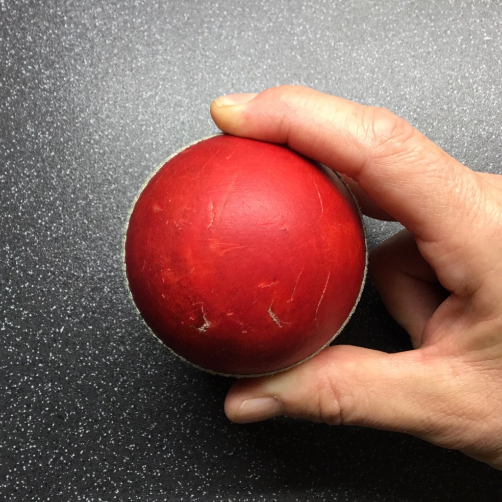 I have relatively small hands (my new batting gloves are a youth size, and a comfortable fit), but I learnt to bowl with the ball pushed significantly further to my fingertips (fig.2).